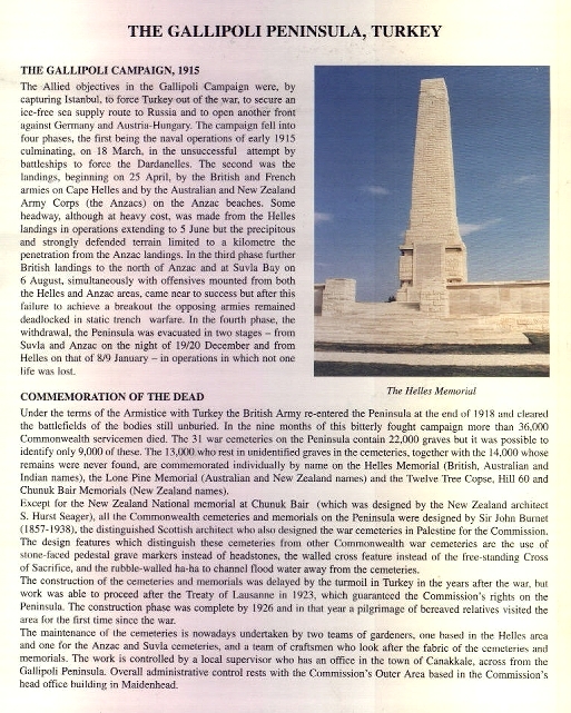 the world. The Commonwealth cemeteries and memorials on the Gallipoli Peninsula